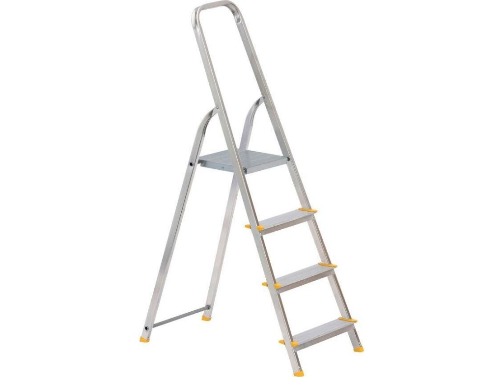 nosnost: 150 kg počet nášlapů vč. plošinky 1 x 4 rozměry plošinky: 264 x 262 mm výška plošinky: 820 mm šířka schůdků: 436 mm materiál: Al Jednostranné schůdky EUROSTYL jsou ideálním pomocníkem pro všechny, kteří hledají lehké a skladné schůdky do domu nebo do obchodu.