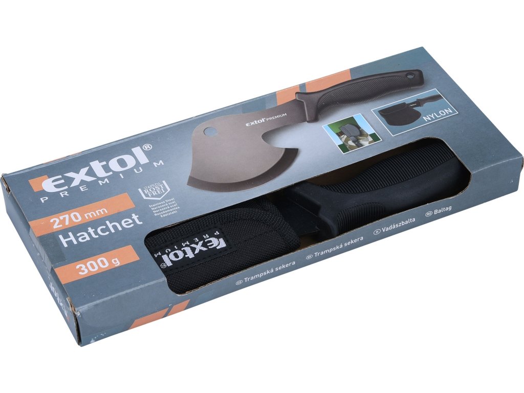 Sekera EXTOL-PREMIUM trampská, 270mm, s nylonovým pouzdrem na opasek, NEREZ