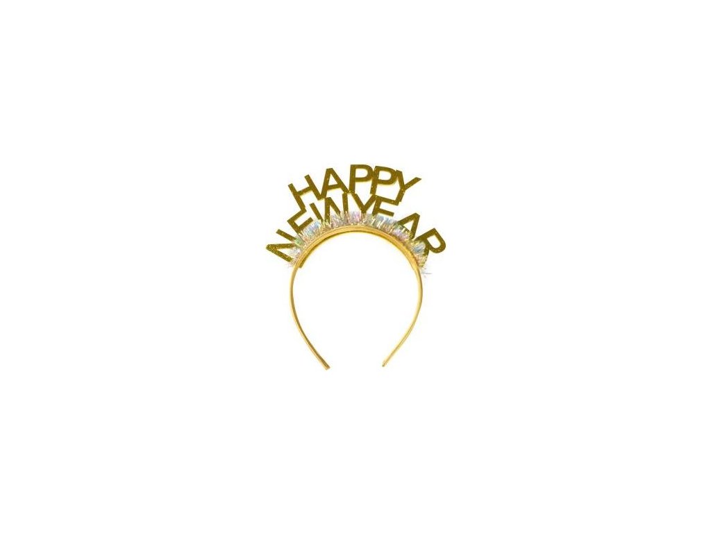 Oslnivá zlatá čelenka s třpytivým nápisem HAPPY NEW YEAR je senzačním doplňkem na oslavu nebo večírek při vítání Nového roku!