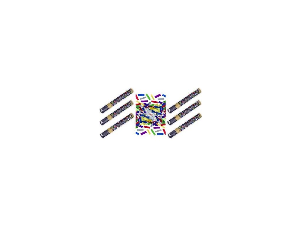 Sada 6 ks konfet o délce 40 cm s metalickými barevnými obdelníčky.