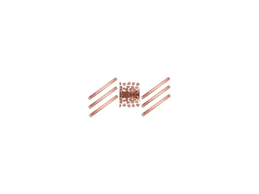 Sada 6 ks konfet o délce 60 cm s růžovo zlatými metalickými srdíčky.