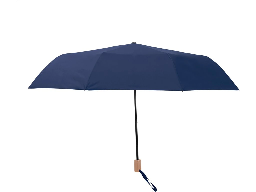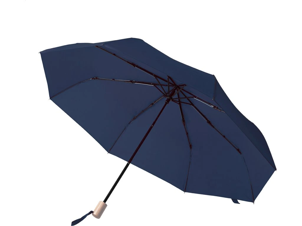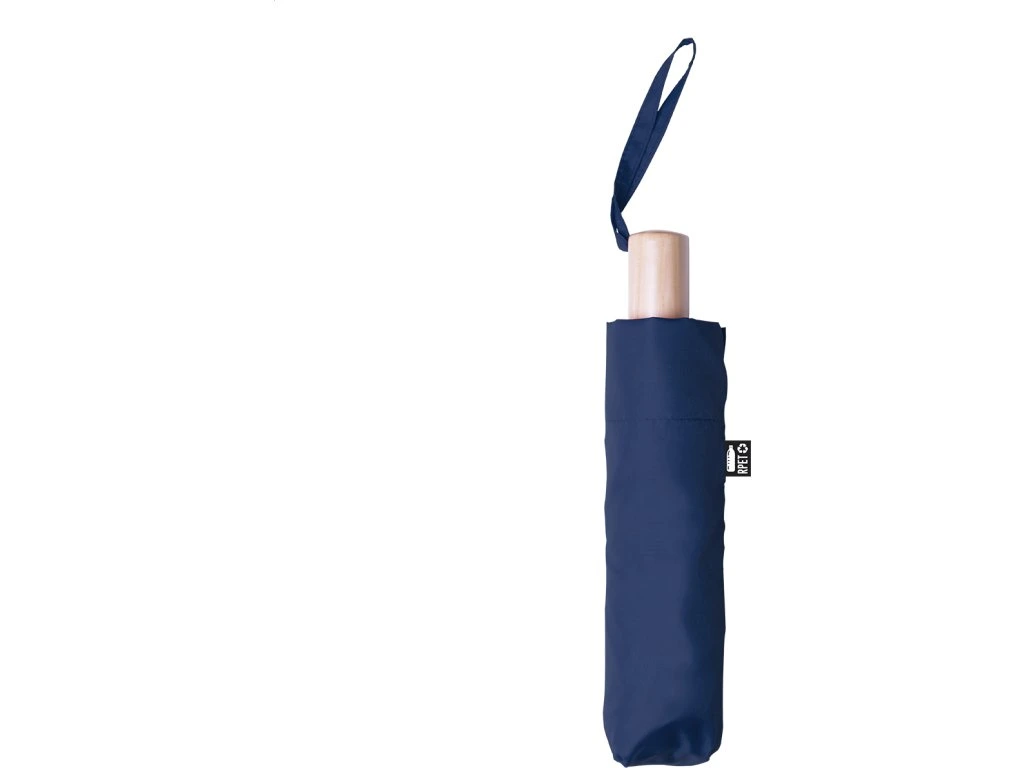 Manuální, větrudodolný skládací deštník s 8 panely ve stejně barevném pouzdře. S kovovým rámem, sklolaminátová žebra a dřevěná rukojeť. 190T RPET pongee, s etiketou s označením RPET.