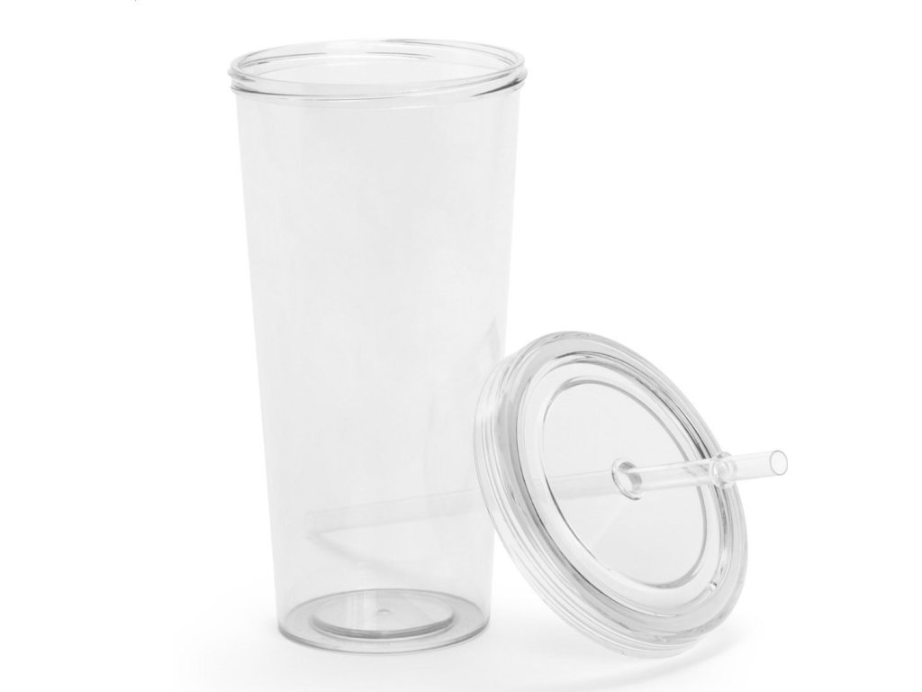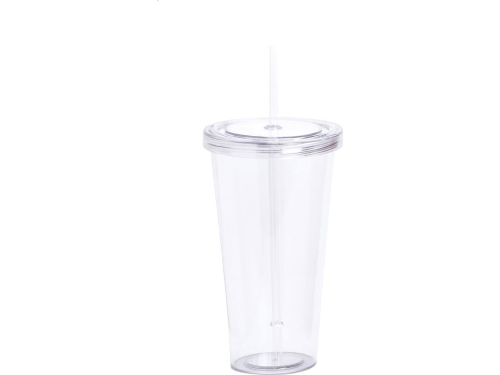 Barevný, průhledný plastový kelímek s brčkem, 750 ml.