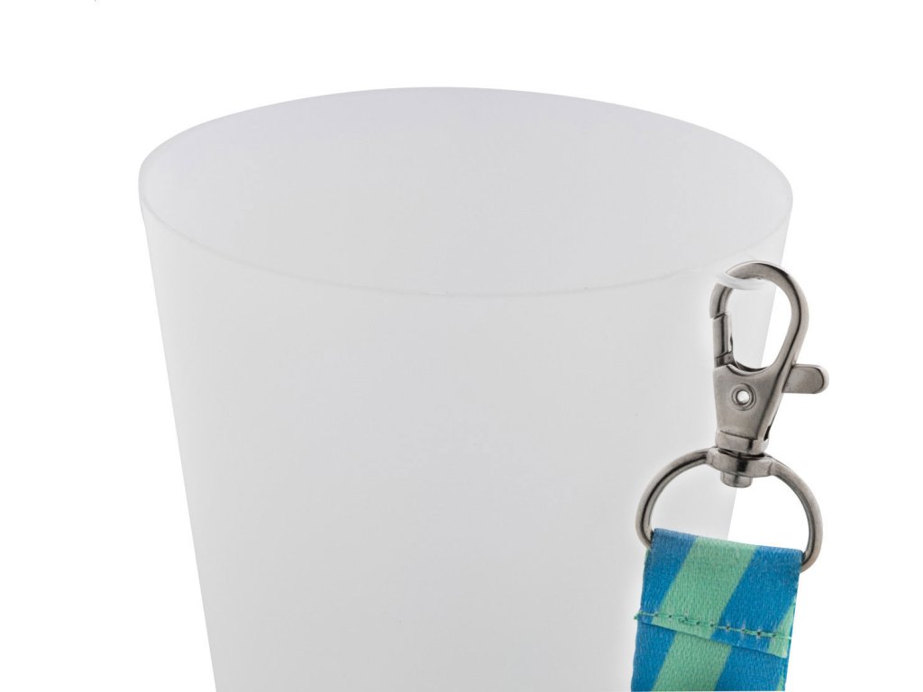 Opakovaně použitelný kelímek s háčkem na šňůrku z matného PP plastu, 500 ml. Čistá kapacita: 450 ml.