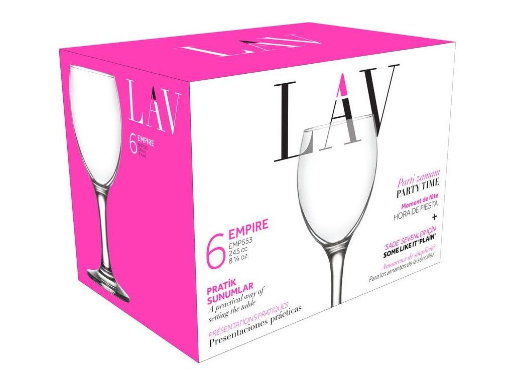Sklenice Empire, LAV, skleněná, na víno, 245 ml, 63x169 mm, bal. 6 ks