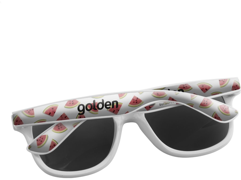 Plastové sluneční brýle se speciálními nožičkami pro epoxy potisk. S ochranou UV 400. Cena zahrnuje epoxy potisk na nožičkách, nezahrnuje tiskovou přípravu. Min. mn.: 100 ks.