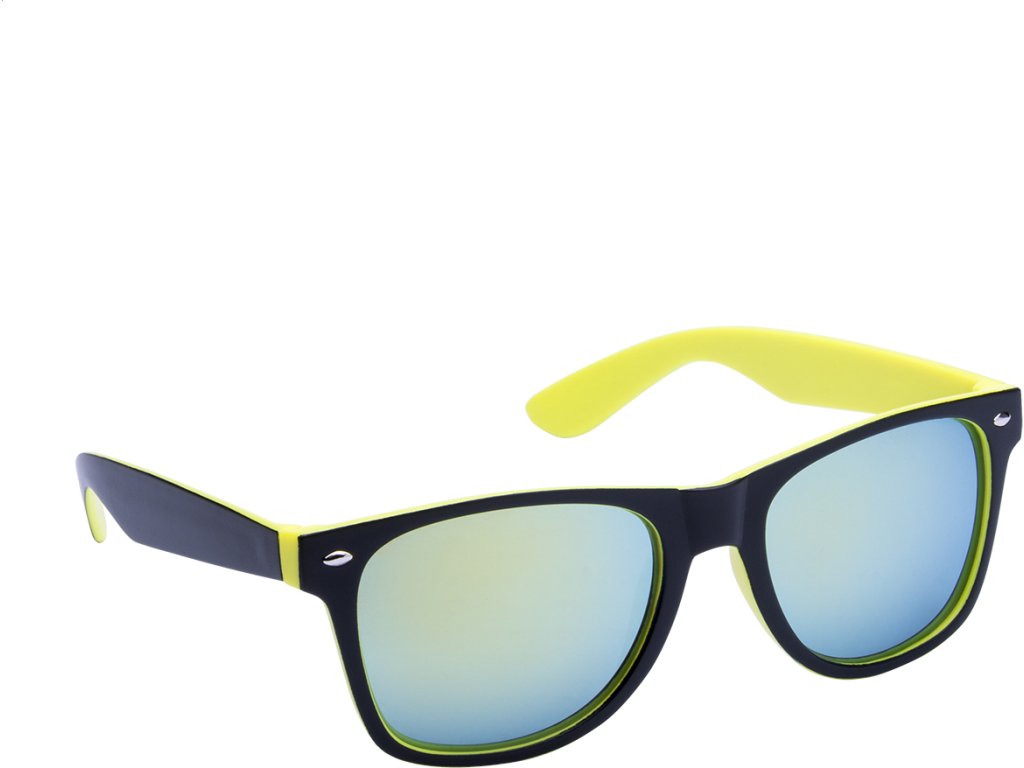 Plastové sluneční brýle s dvoubarevným rámem, zrcadlovými skly a ochranou proti UV 400.