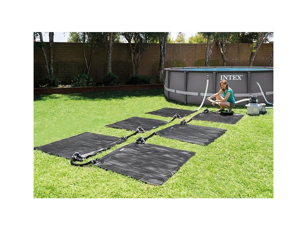 Solární panel díky energii slunečních paprsků dokáže ohřát bazénovou vodu v domácích bazénech o cca 3 až 5 °C, samozřejmě celkový ohřev závisí na povětrnostních podmínkách. Solární ohřev zajišťuje čtvercový panel o rozměrech 1,2x1,2 ms celkovou plochou 1,4 m2. Tento panel je vyplněn jemnými trubičkami, kterými proudí voda. Pro optimální výsledek má být plocha solárních panelů stejná jako plocha bazénu, jednotlivé panely lze propojovat.