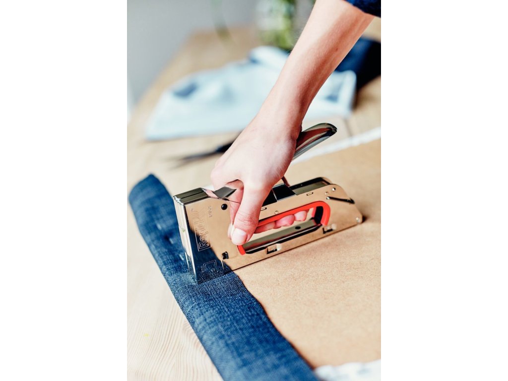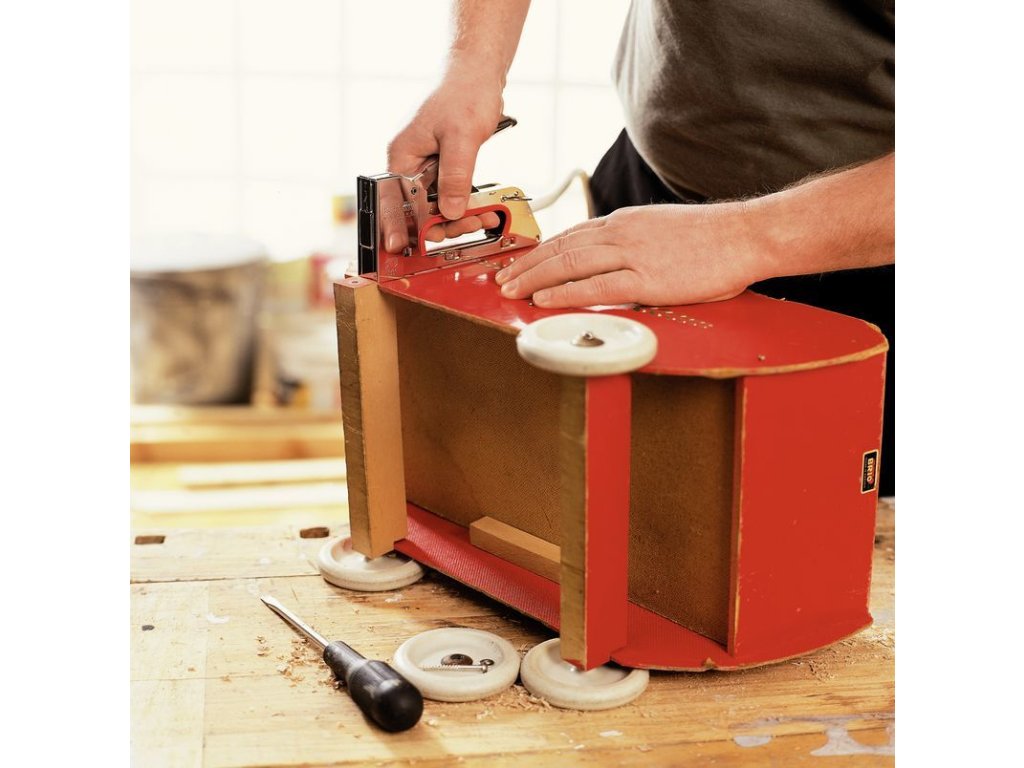 Tento model je dokonalý pro uživatele s menšíma rukama a dá se použít pro různé úlohy, včetně čalounění nábytku nebo upevňování tenčích látek, kůže, papíru, štítků nebo citlivých textilií.