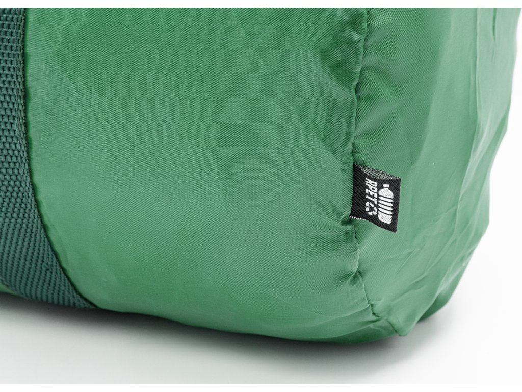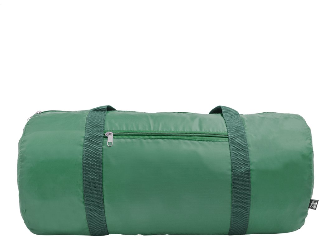 Sportovní taška RPET s hlavní přihrádkou na zip, přední kapsou na zip a dlouhými uchy. Polyester RPET 190T s výrazným štítkem RPET.