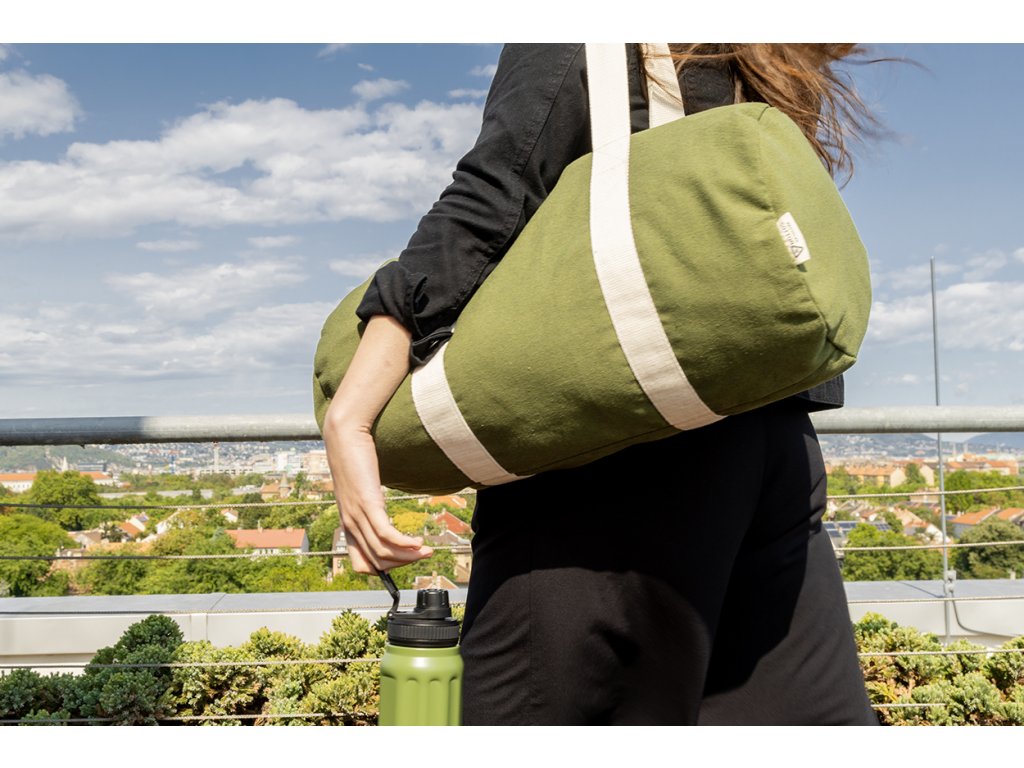 Sportovní taška z recyklovaného plátna s hlavní přihrádkou na zip, vnitřní kapsou na zip a dlouhými uchy. 70 % recyklované bavlny a 30 % recyklovaného polyesteru. S výraznou etiketou z recyklované bavlny.