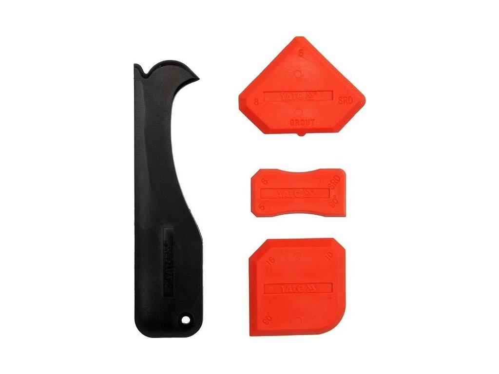 V sadě josu čtyři špachtle různých tlouštěk a profilů, z nichž jedna je navíc opatřena praktickou řezačkou pro odstranění přebytečné hmoty.
