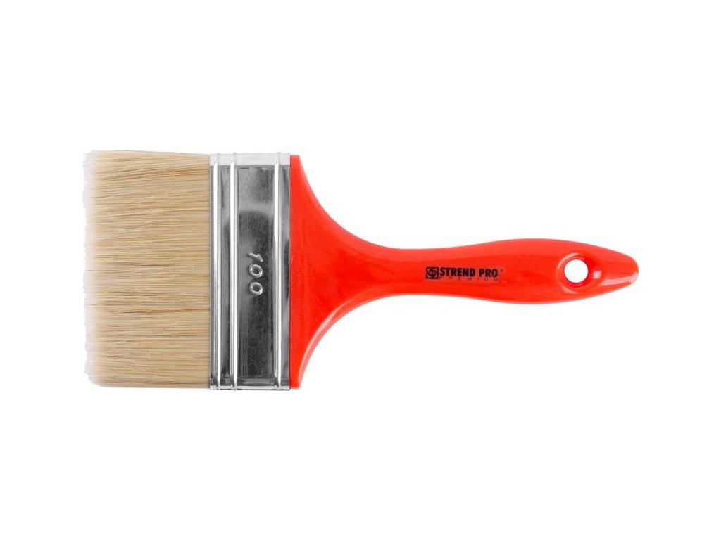 Štětec Strend Pro je nedílnou součástí výbavy každého malíře. Jeho tloušťka je 15 mm a šířka je 100 mm. Držadlo štětce je červené barvy a je vyrobeno z PVC s možností zavěšení.
