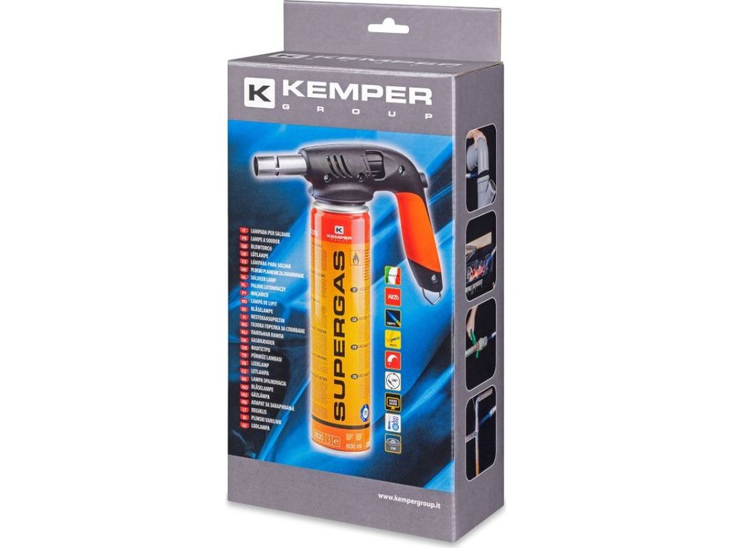 KEMPER - Pájecí hořák piezo + SUPERGAS plynová kartuše 600 ml (330 g)