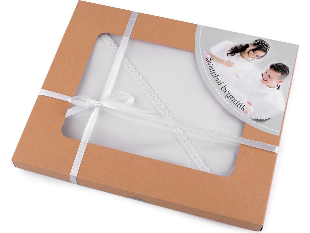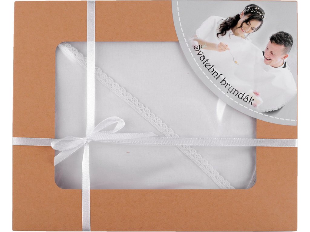 Svatební bryndák ocení novomanželé při prvním společném obědě. Lemuje ho romantická paličkovaná krajka. Bryndák můžete ještě dozdobit dle svého vkusu. Dodáváme ho v dárkové krabičce.