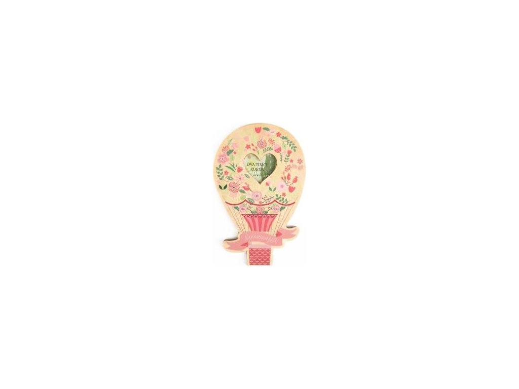 Dárková dřevěná kapsa na peníze s motivem balónu umožňuje darovat bankovky nevšední cestou.
