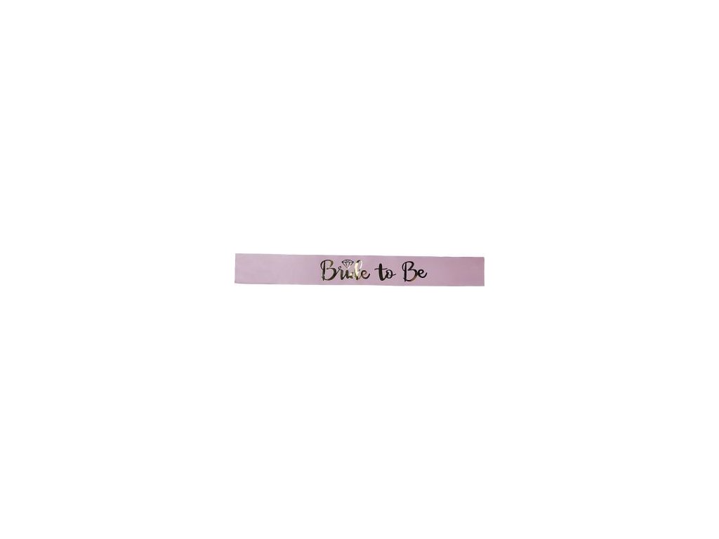 Saténová šerpa v růžové barvě s růžovozlatým nápisem „Bride to be“ Budoucí nevěsta – je důležitým doplňkem dámské rozlučky se svobodou.