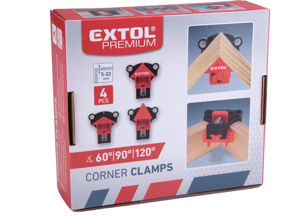 EXTOL PREMIUM svorky TRUHLÁŘSKÉ svěrky rohové úhlové, úhly 60°-90°-120°, sada