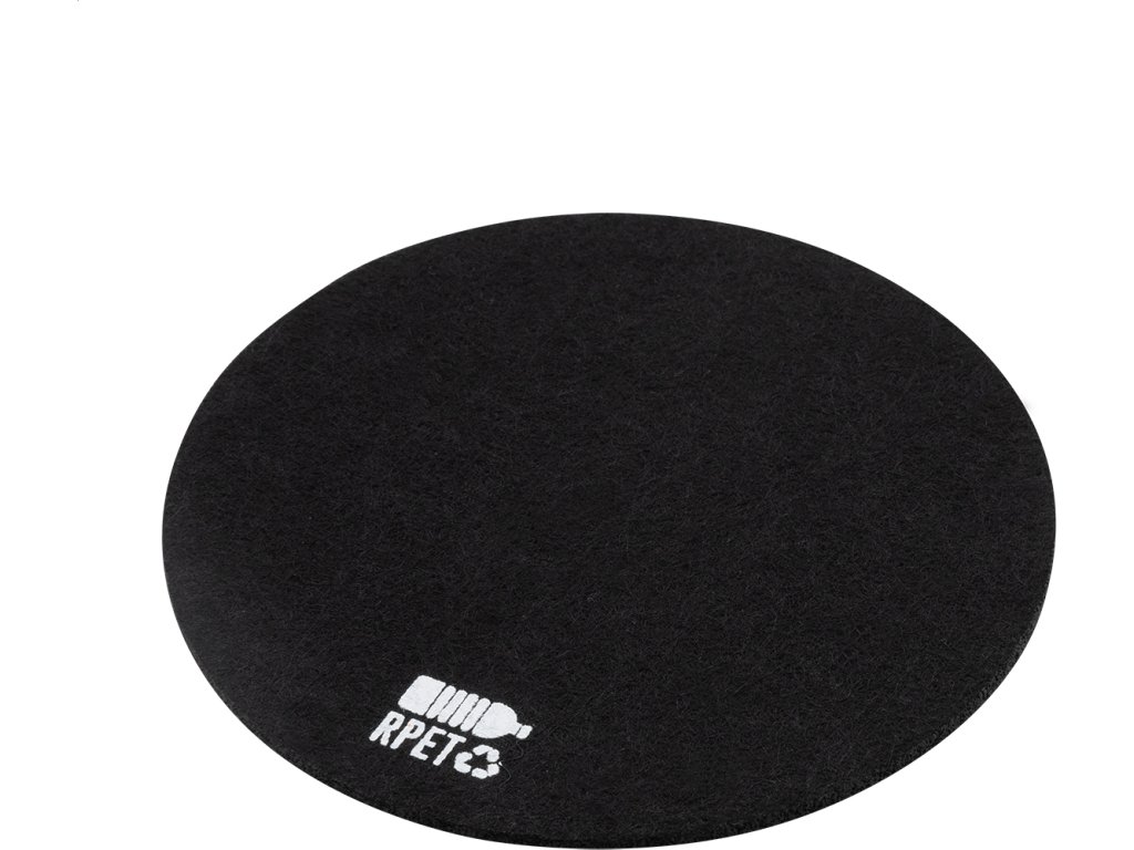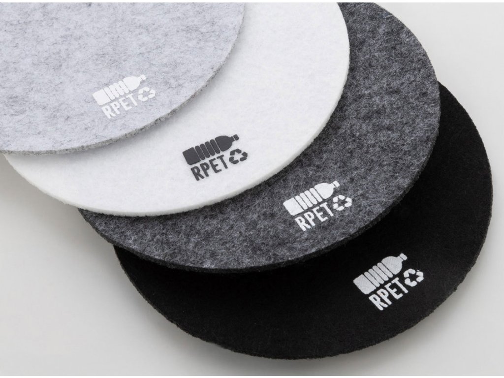 Kulatý plstěný podtácek RPET. S výrazným znakem RPET.