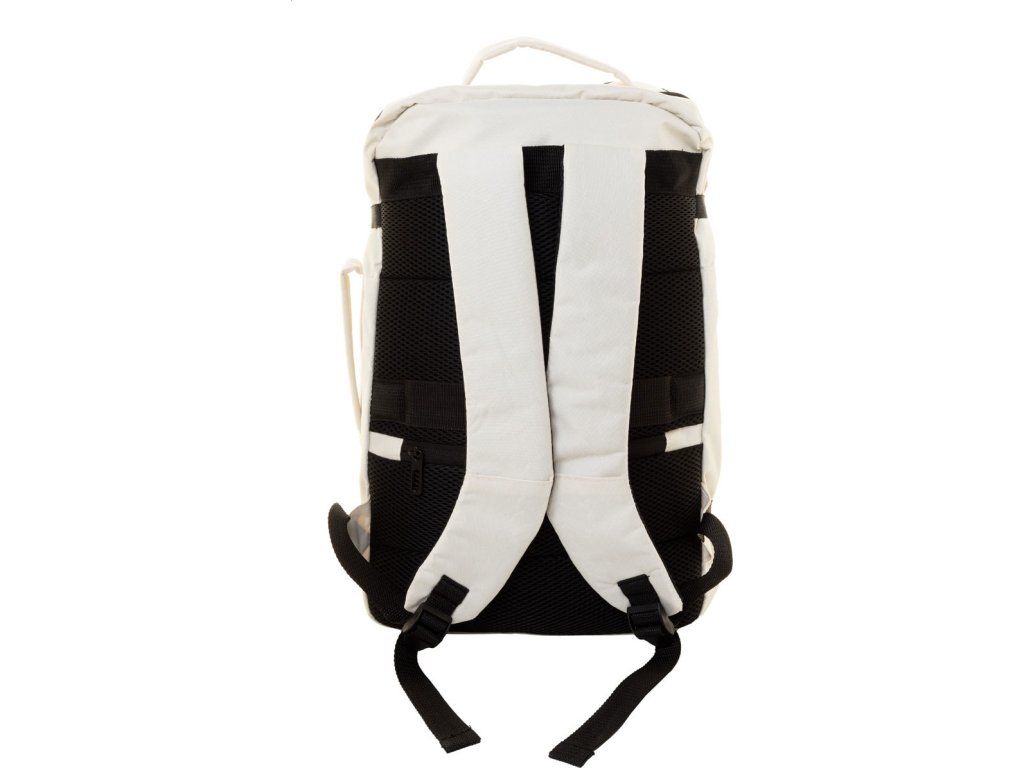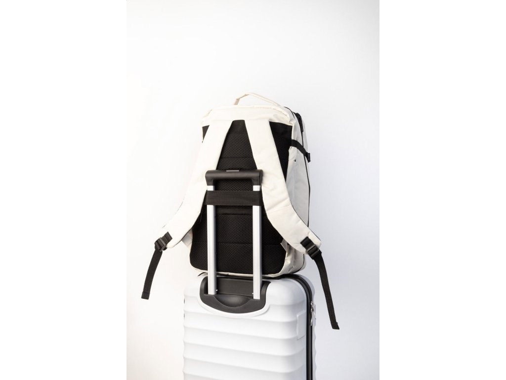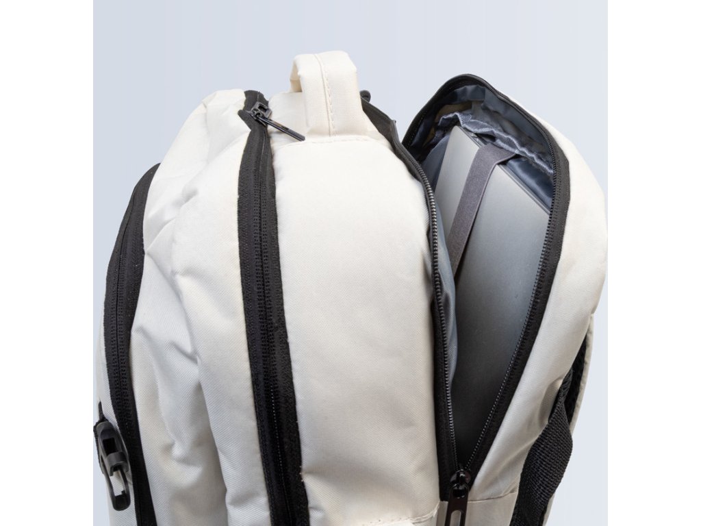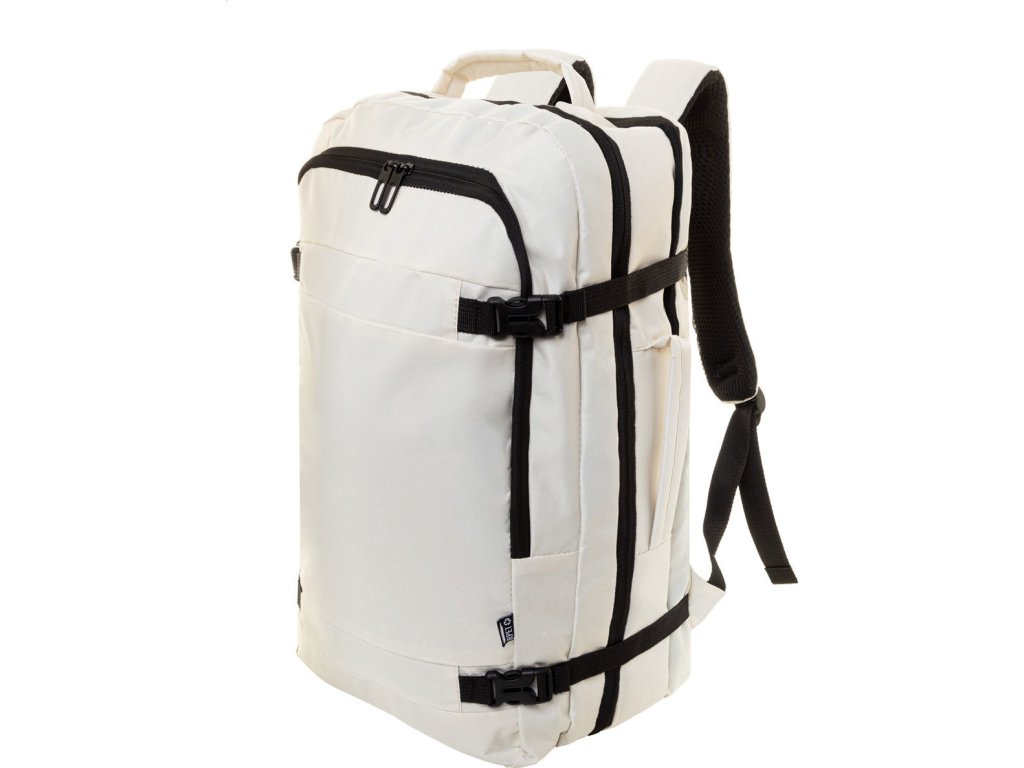 Dvojfunkční RPET batoh a taška na dokumenty se 2 přihrádkami na zip, přední kapsou na zip a polstrovanou přihrádkou na notebook (15"). S kapsou proti krádeži, popruhem na vozík, polstrovanými zády a ramenními popruhy. Polyester 600D RPET, s výrazným štítkem RPET.