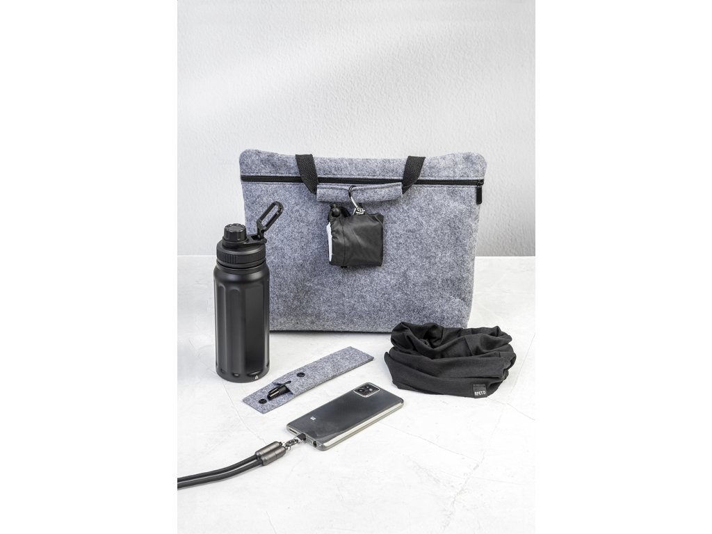 Plstěná taška na dokumenty nebo notebook z RPET s hlavní přihrádkou na zip a vnitřní kapsou na zip. Vhodná pro notebooky do 15". S výrazným štítkem RPET.