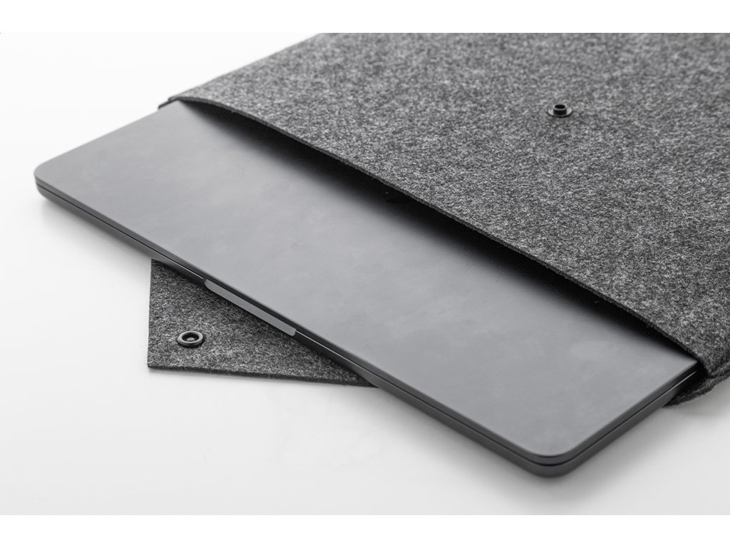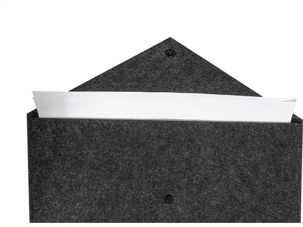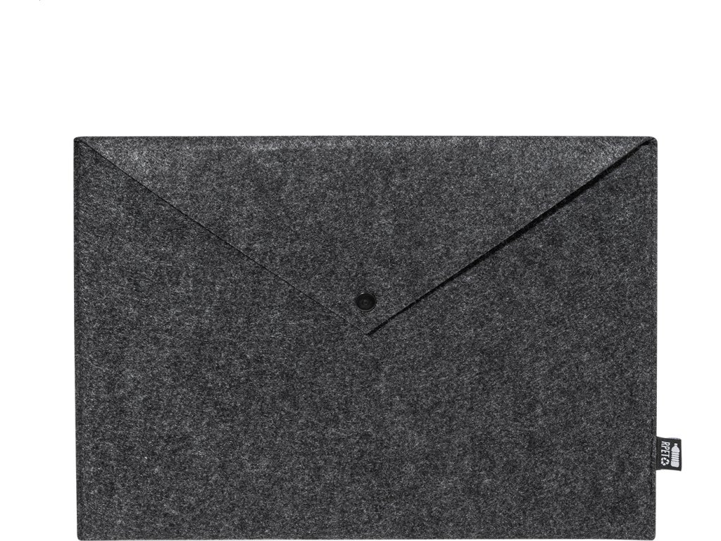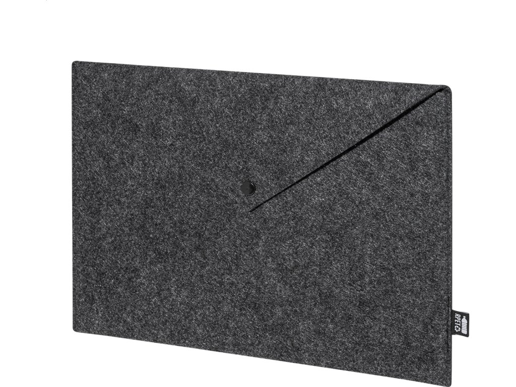 Taška na dokumenty nebo pouzdro na notebook z RPET plsti s knoflíkovým zapínáním. Vhodné pro notebooky do 13". S výrazným štítkem RPET.