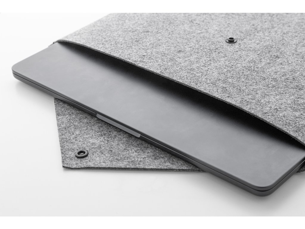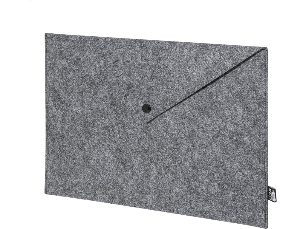 Taška na dokumenty nebo pouzdro na notebook z RPET plsti s knoflíkovým zapínáním. Vhodné pro notebooky do 13". S výrazným štítkem RPET.