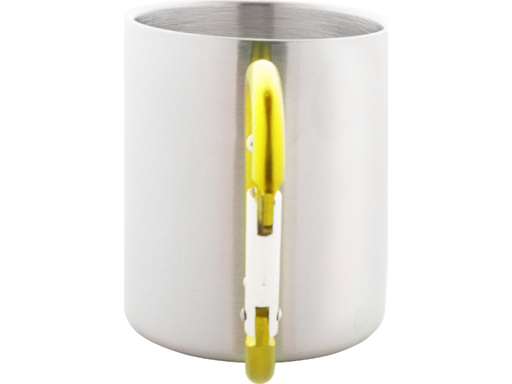 Nerezový hrnek s barevným karabinkovým uchem, 200 ml.