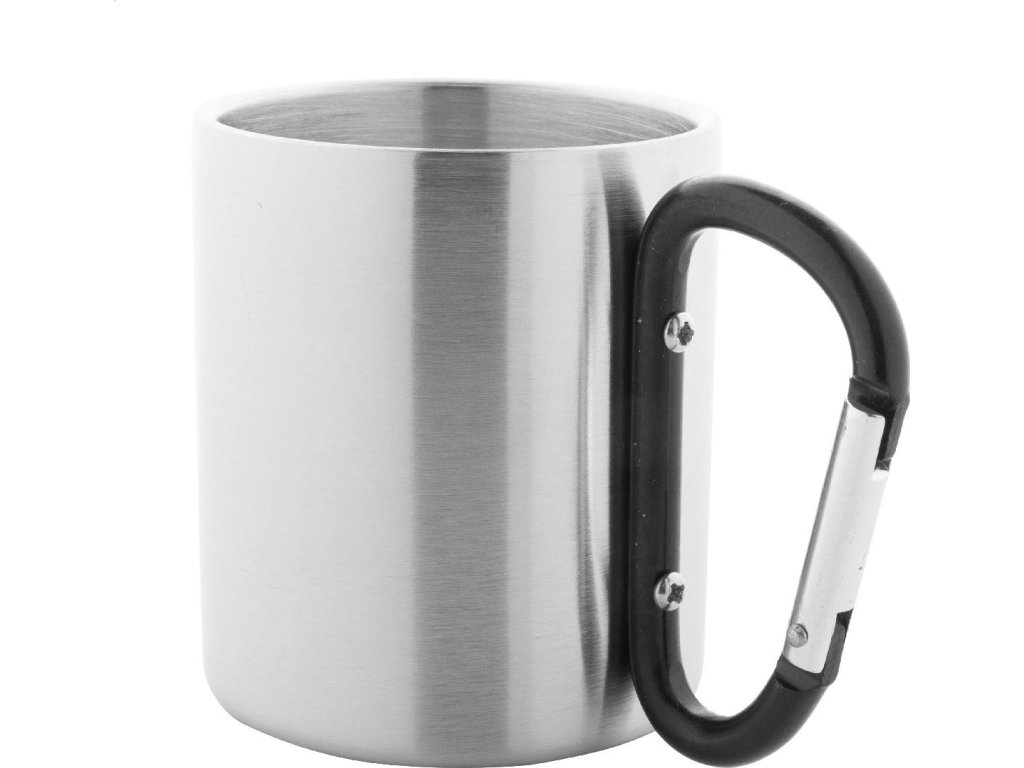 Nerezový hrnek s barevným karabinkovým uchem, 200 ml.