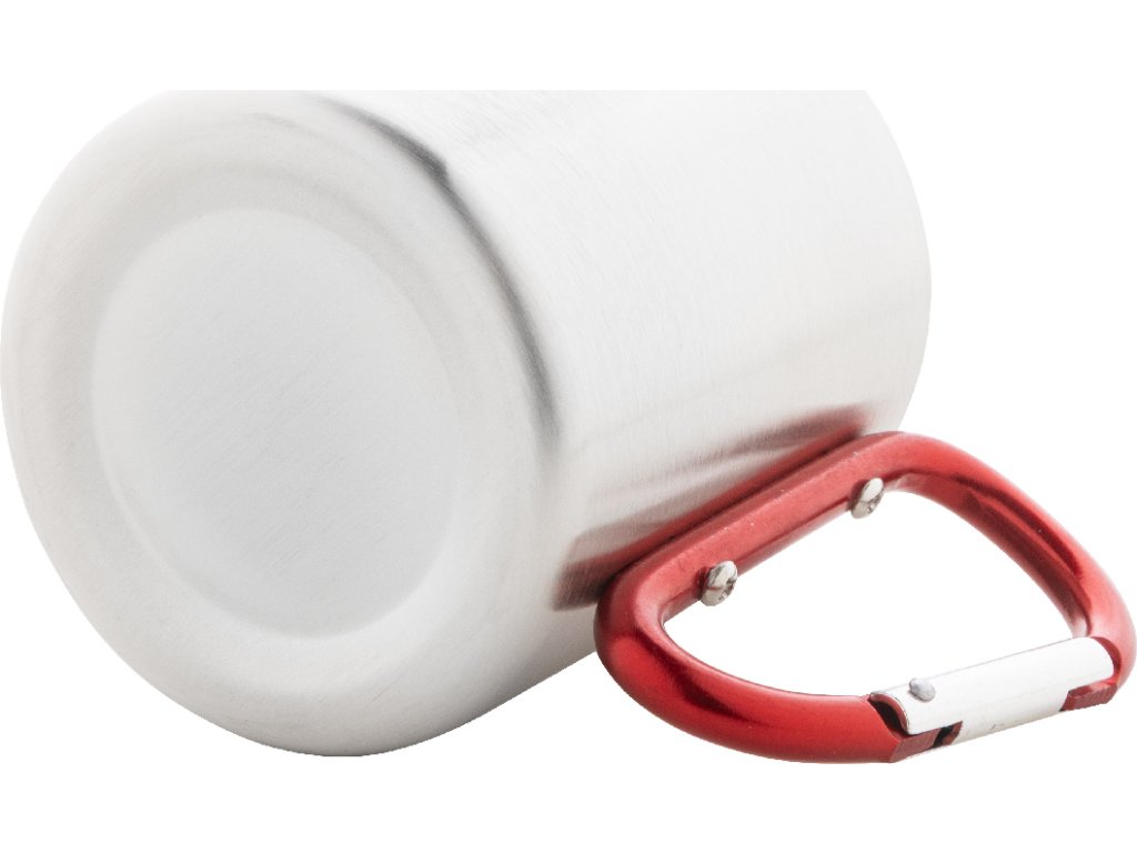 Nerezový hrnek s barevným karabinkovým uchem, 200 ml.