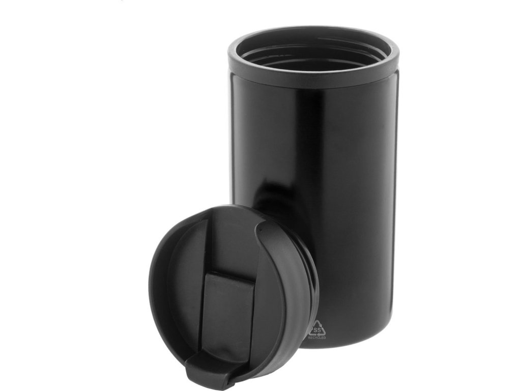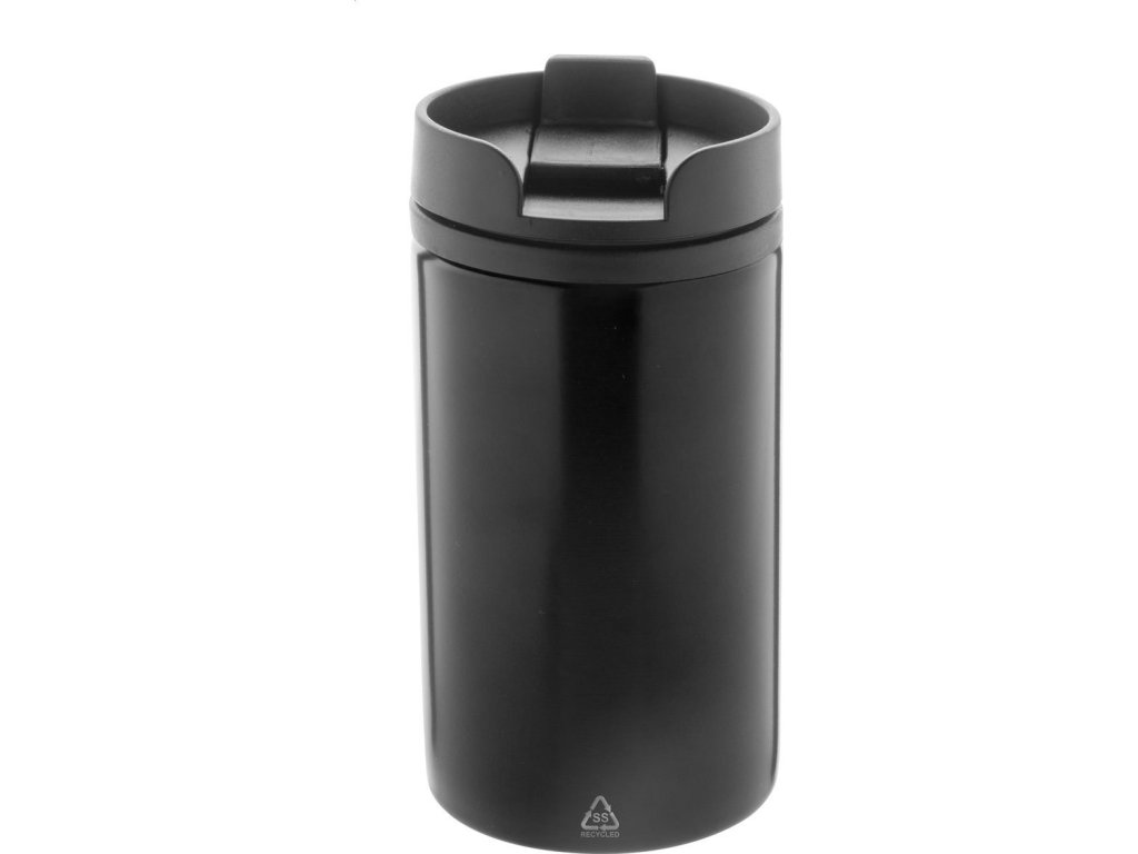 Dvoustěnný izolovaný termo hrnek z recyklované nerezové oceli s PP plastem uvnitř a víčkem na pití. 250 ml.