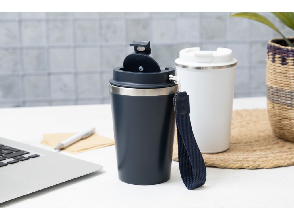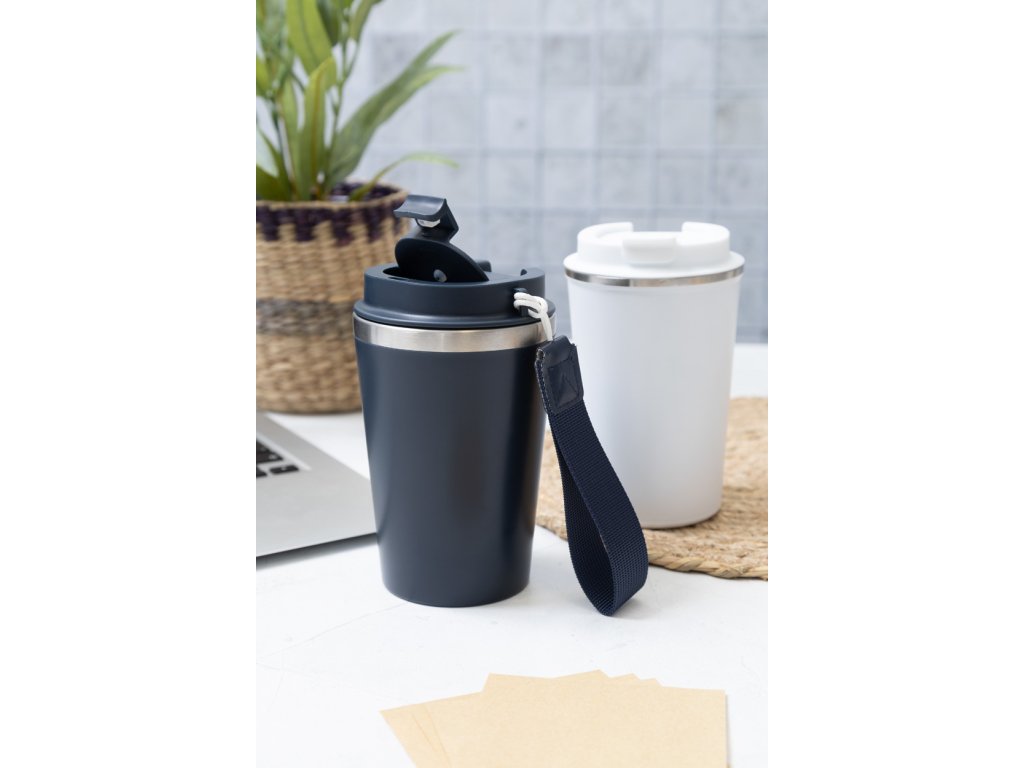 Dvoustěnný termo hrnek z recyklované nerezové oceli s víčkem na pití z PP. 350 ml.