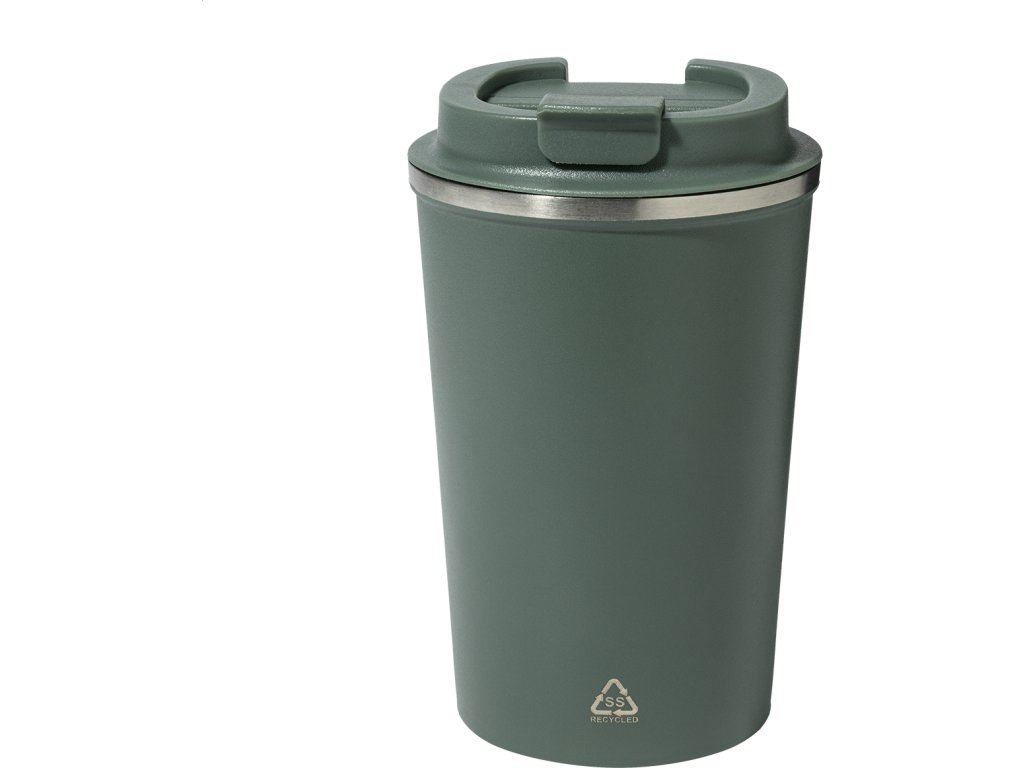 Dvoustěnný termo hrnek z recyklované nerezové oceli s víčkem na pití z PP. 350 ml.