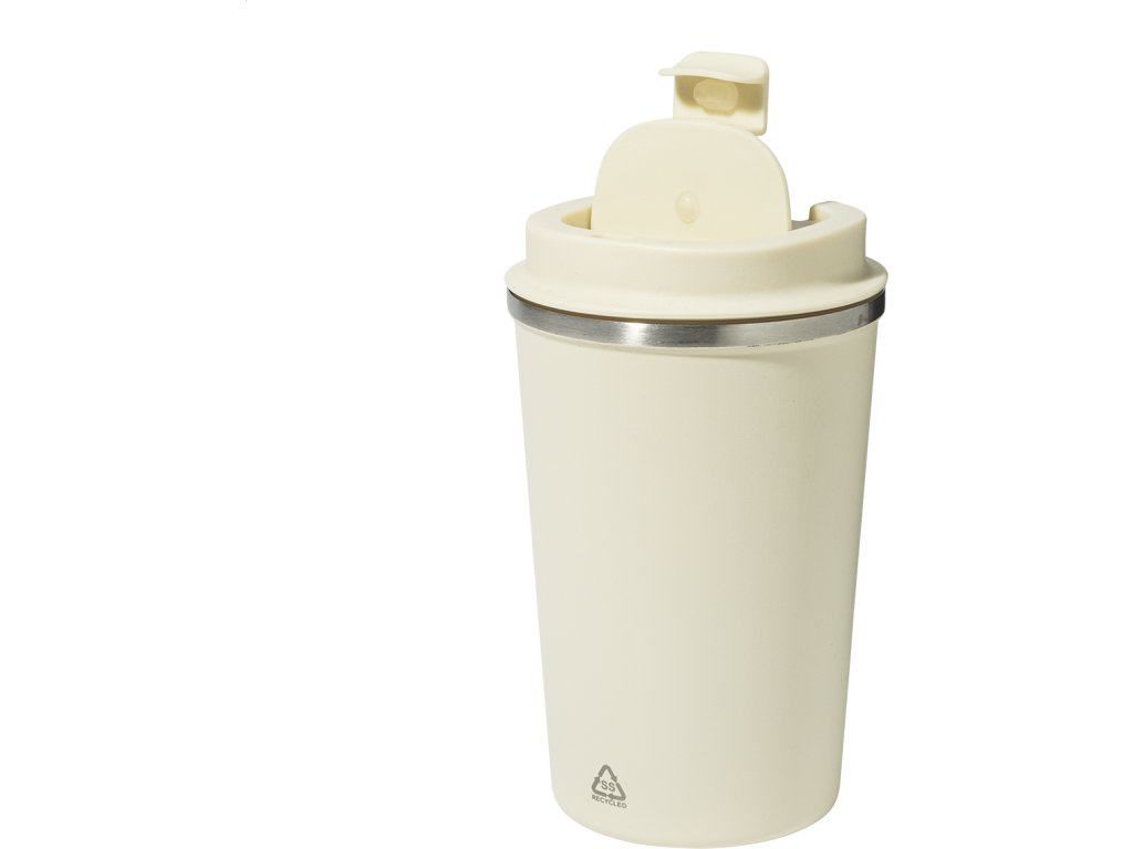 Dvoustěnný termo hrnek z recyklované nerezové oceli s víčkem na pití z PP. 350 ml.