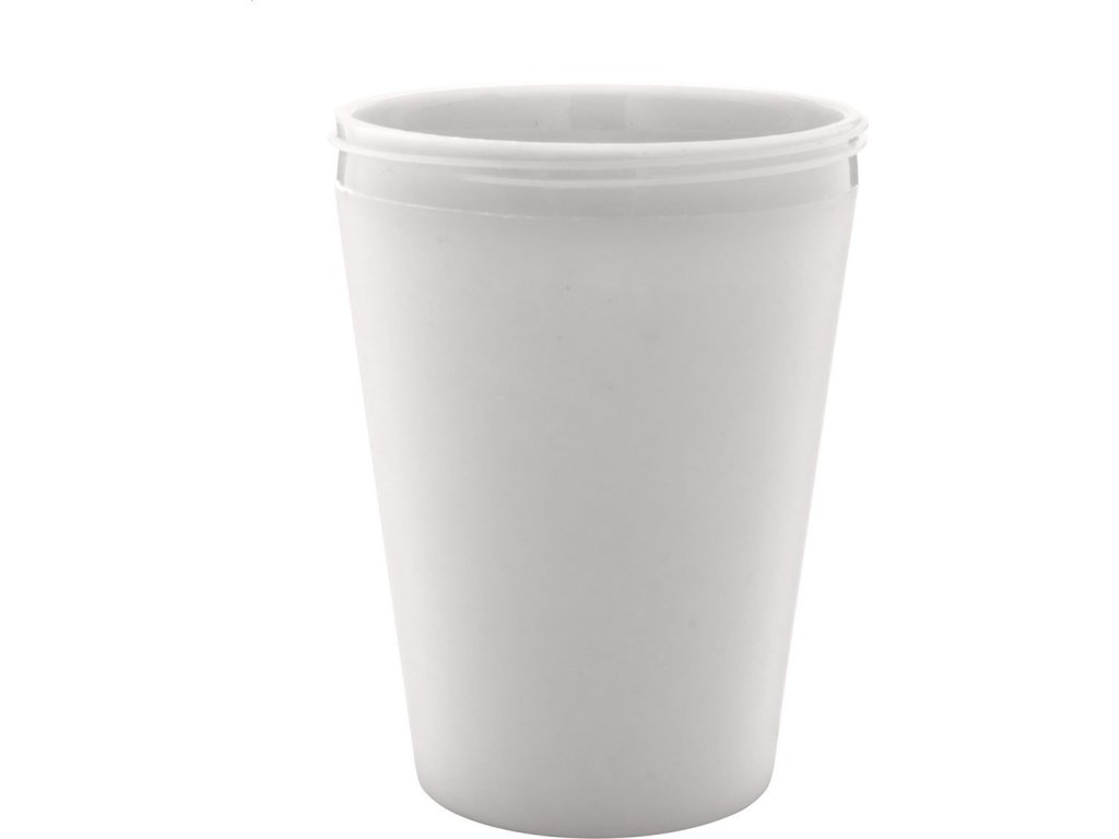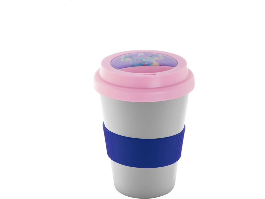 Dvoustěnný plastový termo hrnek s víčkem na pití a silikonovým úchopem na zakázku. 300 ml. Min. mn.: 50 ks.