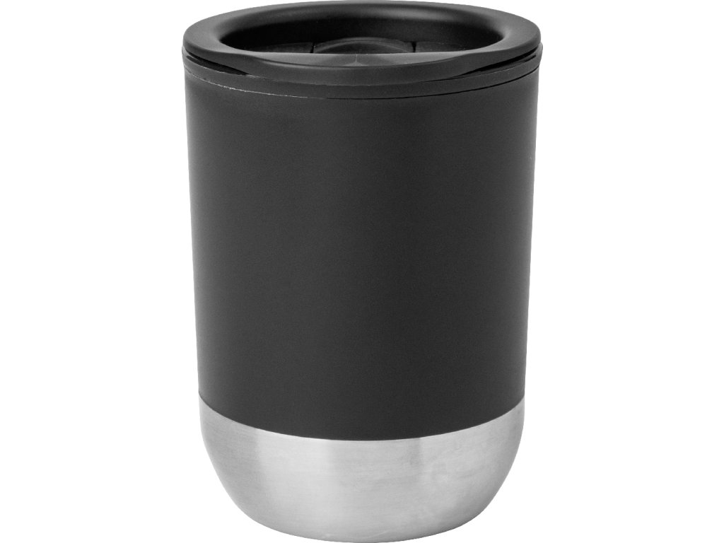 Dvoustěnný termo hrnek s PP plastovou izolací se dnem z recyklované nerezové oceli a víčkem na pití. 300 ml.