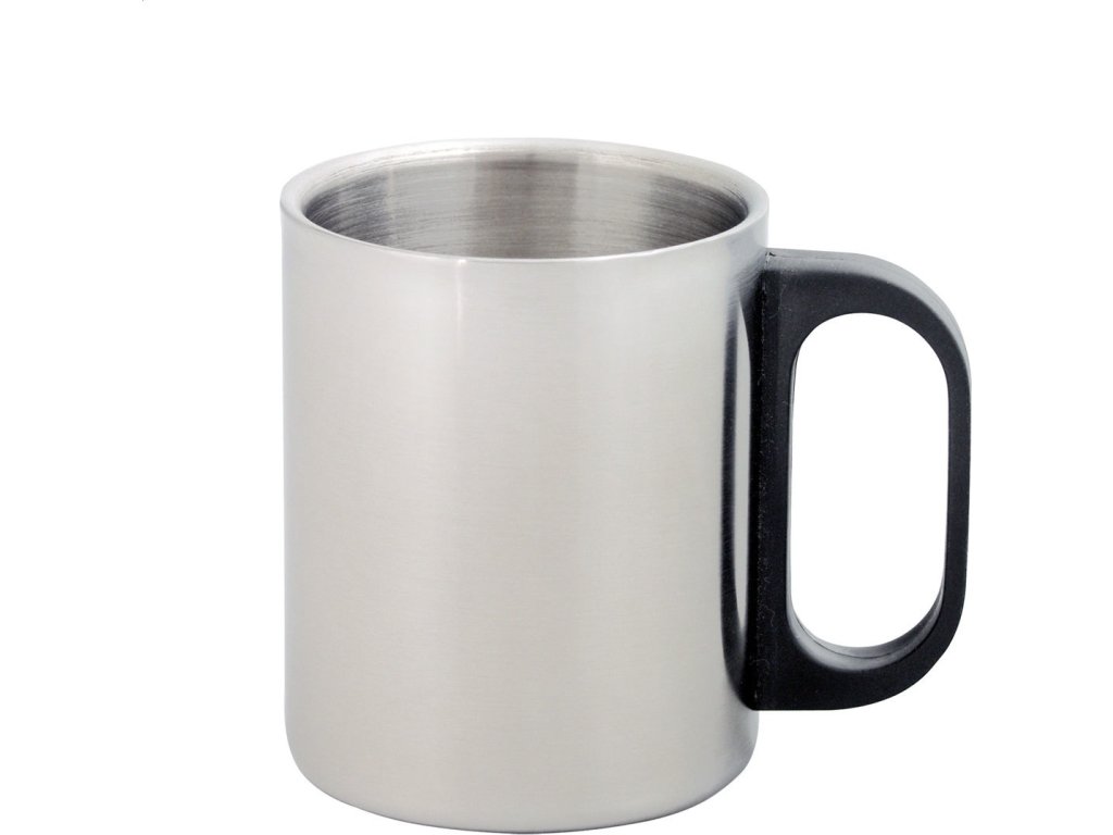 Dvoustěnný nerezový hrnek s plastovým uchem, 175 ml. V dárkové krabičce.