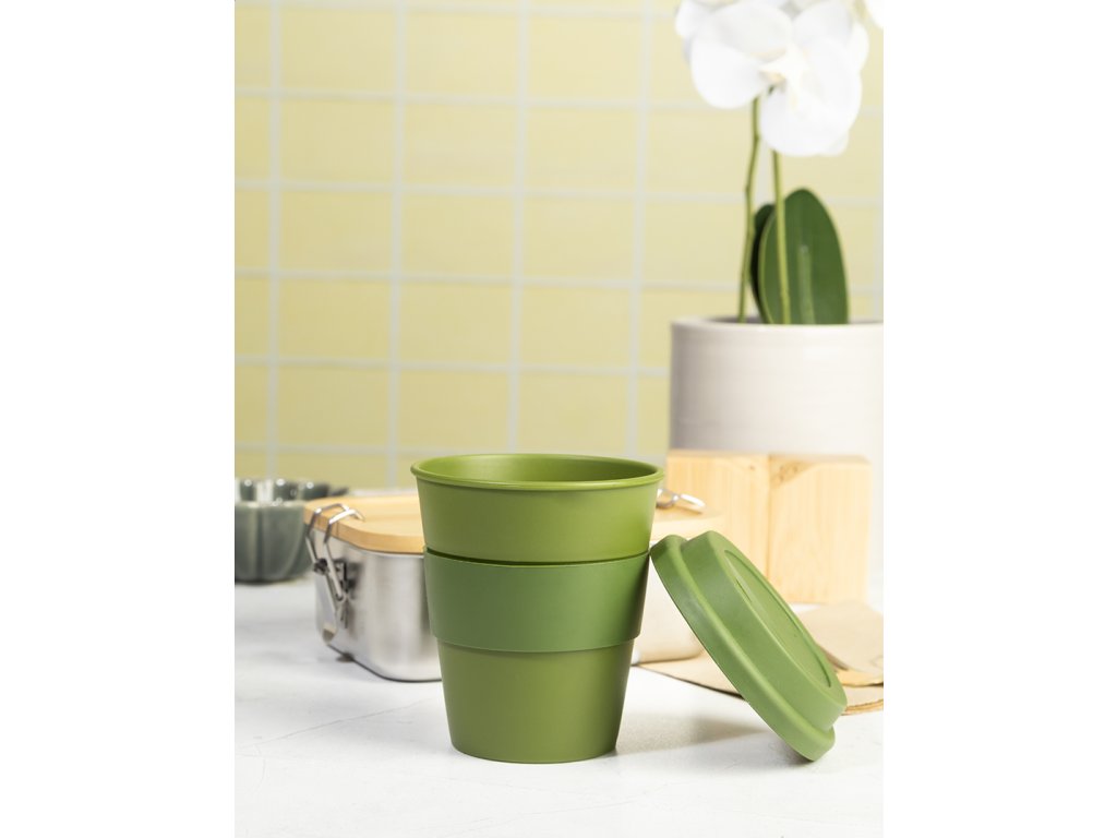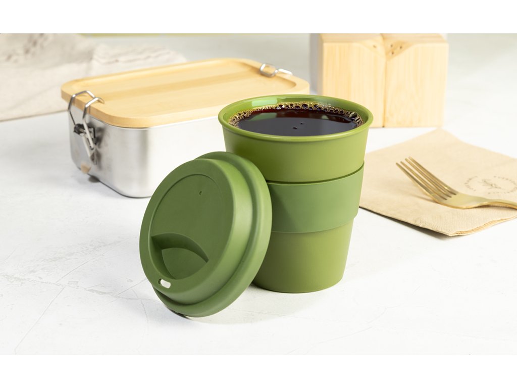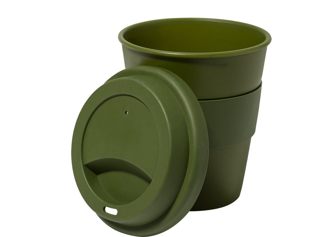 Jednostěnný cestovní kelímek z plastu PP s víčkem z TPE a úchytem. 350 ml.