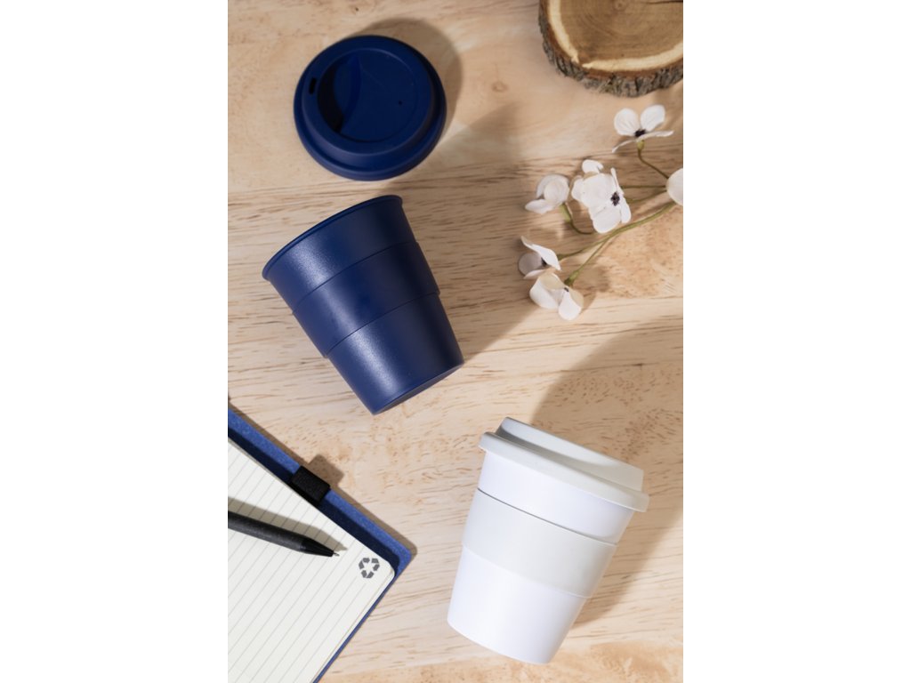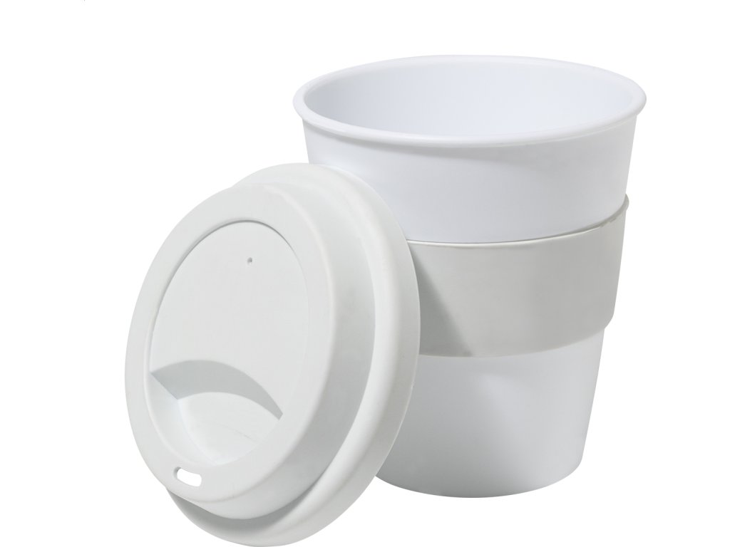 Jednostěnný cestovní kelímek z plastu PP s víčkem z TPE a úchytem. 350 ml.