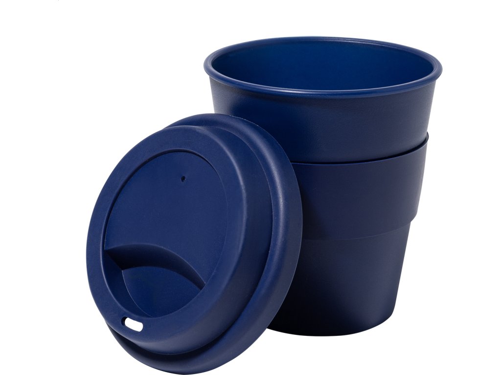 Jednostěnný cestovní kelímek z plastu PP s víčkem z TPE a úchytem. 350 ml.