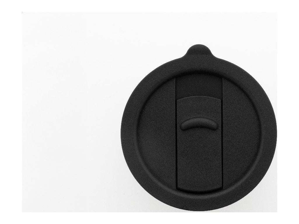 Silikonem potažený keramický cestovní kelímek s PP plastovým odkapávacím víčkem. 300 ml.