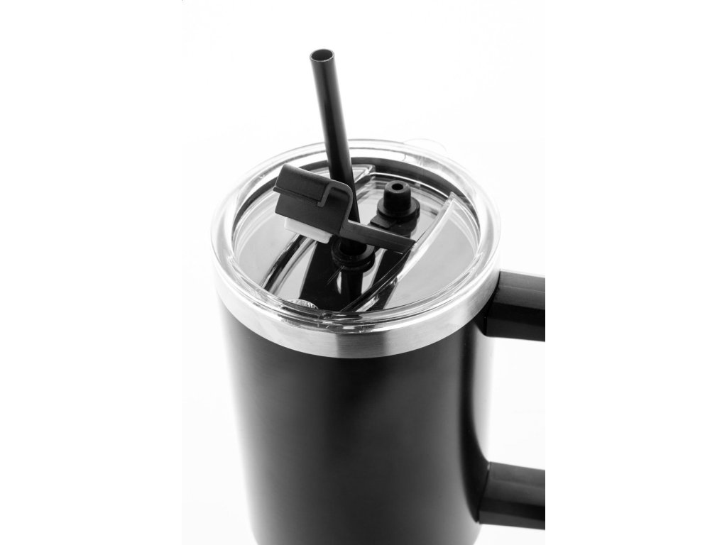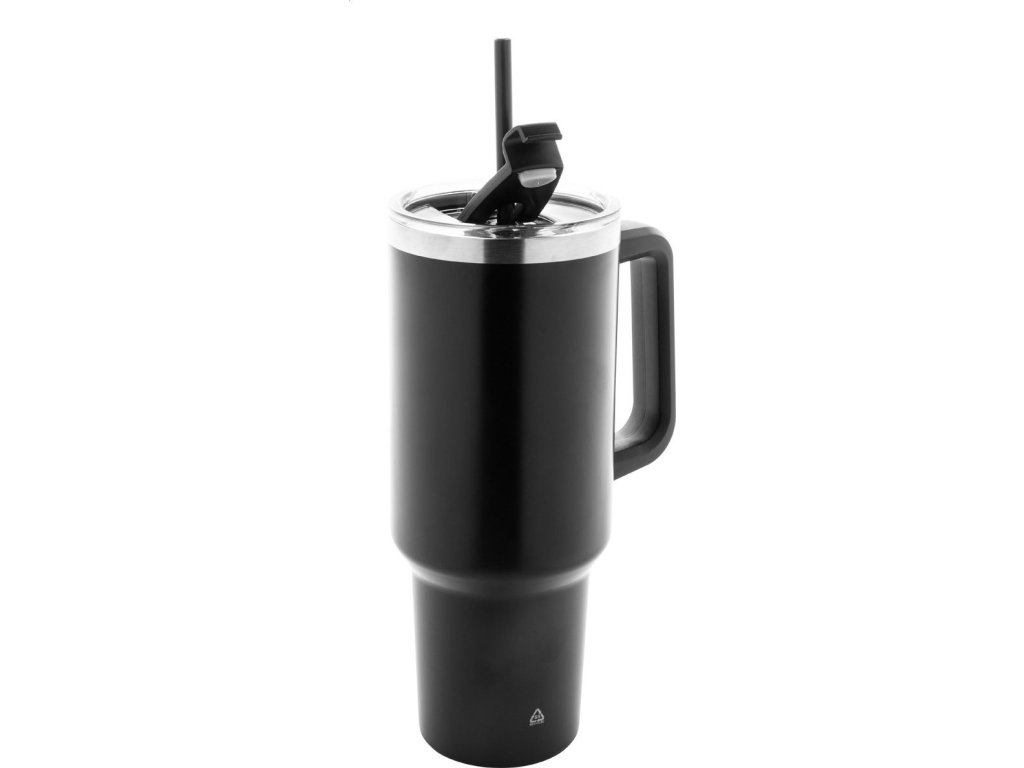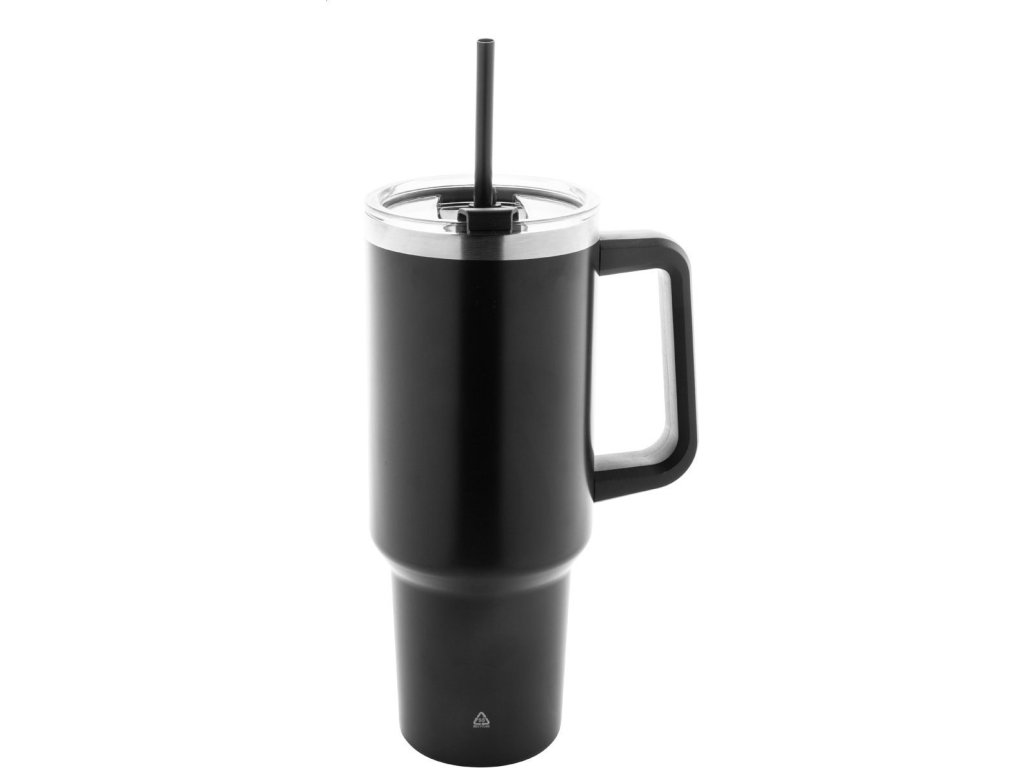 Dvouplášťový vakuově izolovaný termo hrnek z recyklované nerezové oceli s PS víčkem na pití a PP brčkem. 1200 ml.