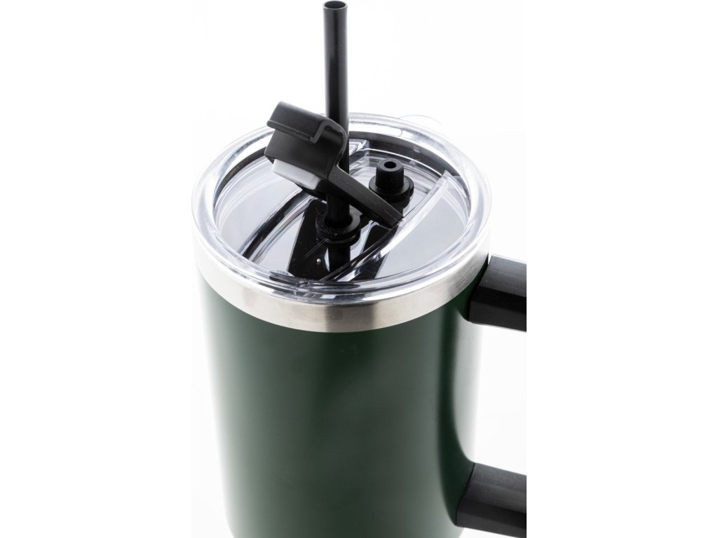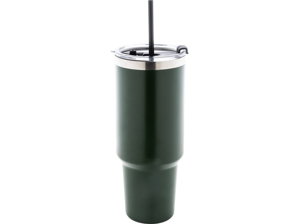 Dvouplášťový vakuově izolovaný termo hrnek z recyklované nerezové oceli s PS víčkem na pití a PP brčkem. 1200 ml.