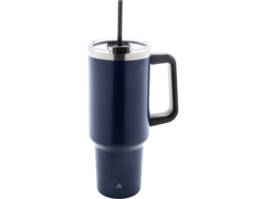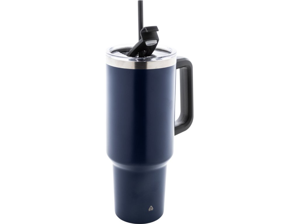 Dvouplášťový vakuově izolovaný termo hrnek z recyklované nerezové oceli s PS víčkem na pití a PP brčkem. 1200 ml.