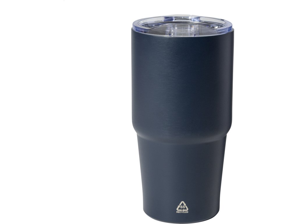 Dvoustěnný vakuově izolovaný termohrnek z recyklované nerezové oceli s víčkem z polystyrenového plastu. 600 ml.