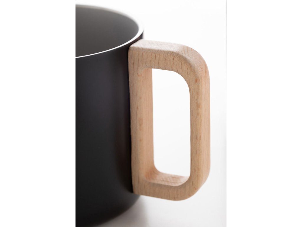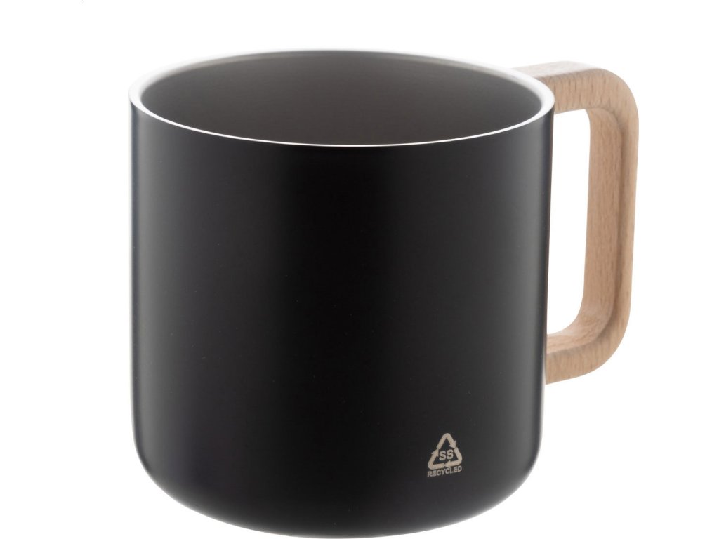 Dvoustěnný termo hrnek z recyklované nerezové oceli s dřevěným uchem. 350 ml.