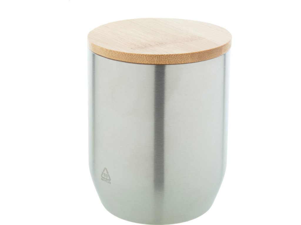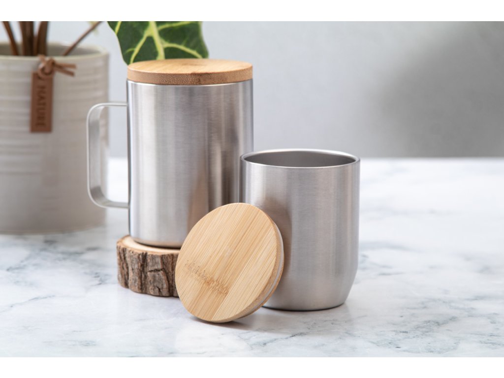Dvoustěnný termo hrnek z recyklované nerezové oceli s bambusovým víčkem, 300 ml.