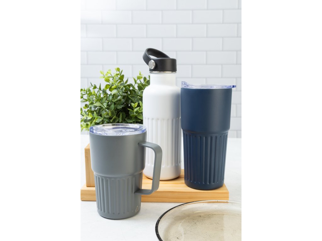 Dvoustěnný termo hrnek z recyklované nerezové oceli s víčkem na pití z ABS plastu. 470 ml.