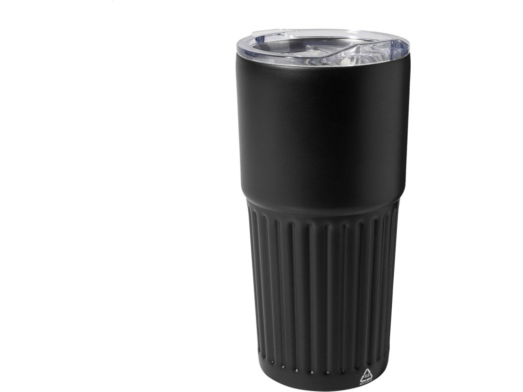 Dvoustěnný termo hrnek z recyklované nerezové oceli s víčkem na pití z ABS plastu. 600 ml.