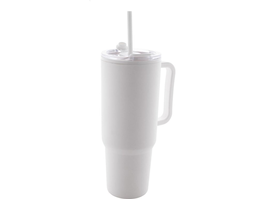 Dvoustěnný termo hrnek izolovaný PP plastem s víčkem na pití a brčkem. 1100 ml.